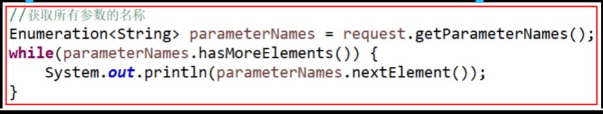 3、获取所有请求参数名称:request.getParameterNames(),返回的是一个枚举;如图:
