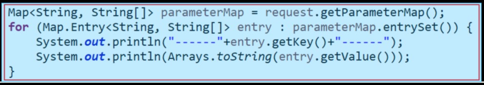 4、获取所有请求参数的key和value:request.getParameterMap(),返回集合Map<String,String[]>;如图: