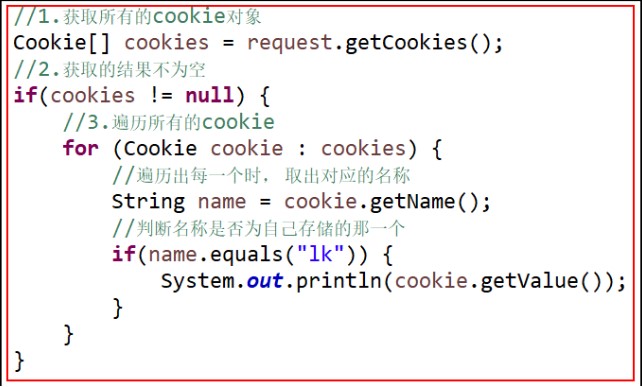 1、通过Request对象的getCookies()方法,获取的是所有的cookie,要进行遍历找出自己需要的