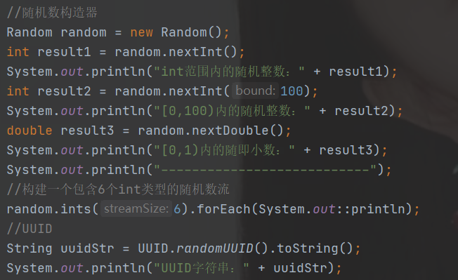3.5、Java8新增随机数方法:ints(n);返回n个int类型的随机数流