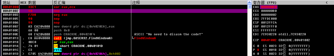 - "CMP"比较指令用于对两个操作数进行相减,结果等于0,则“Z”标志位为1.
