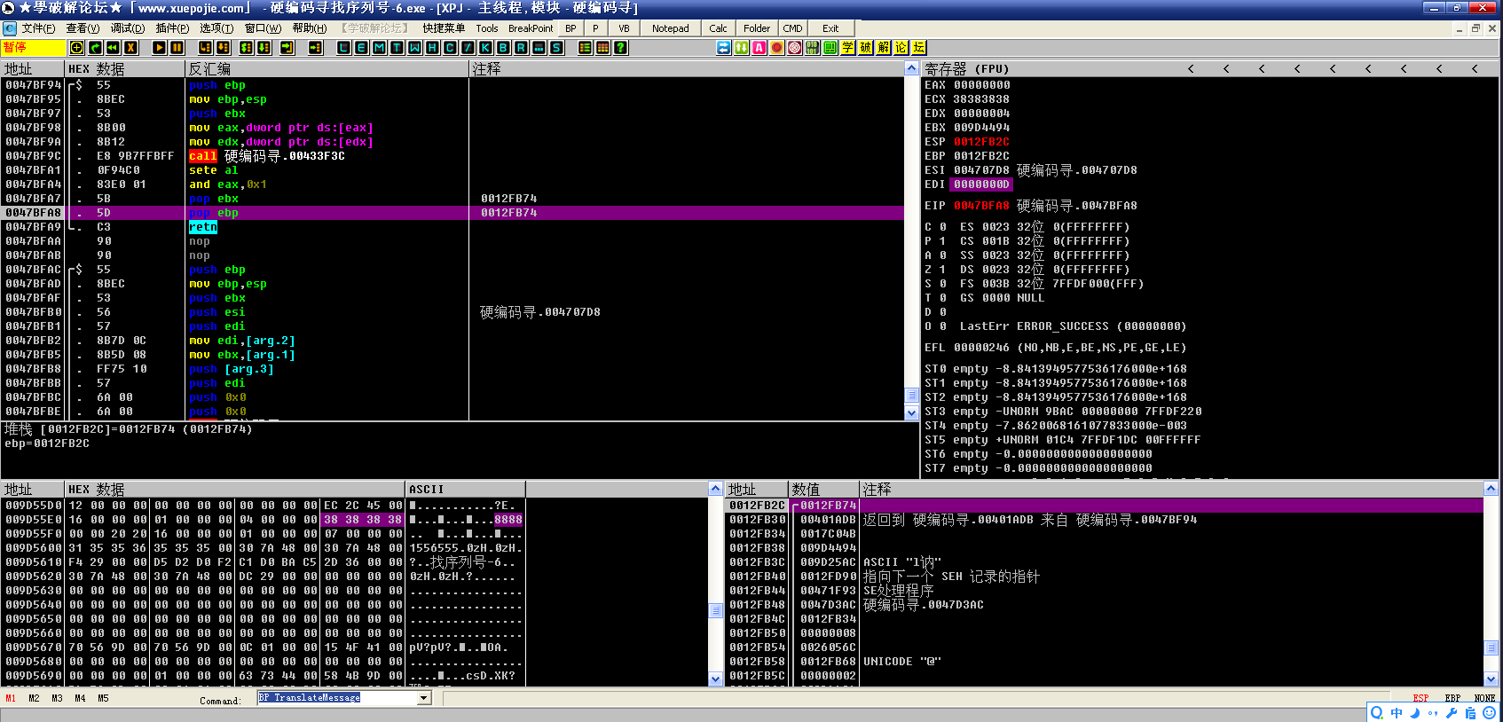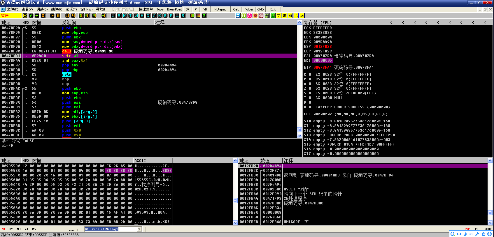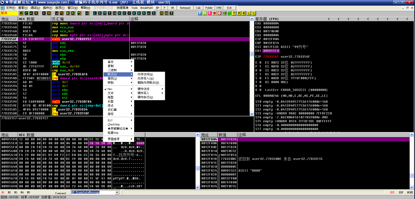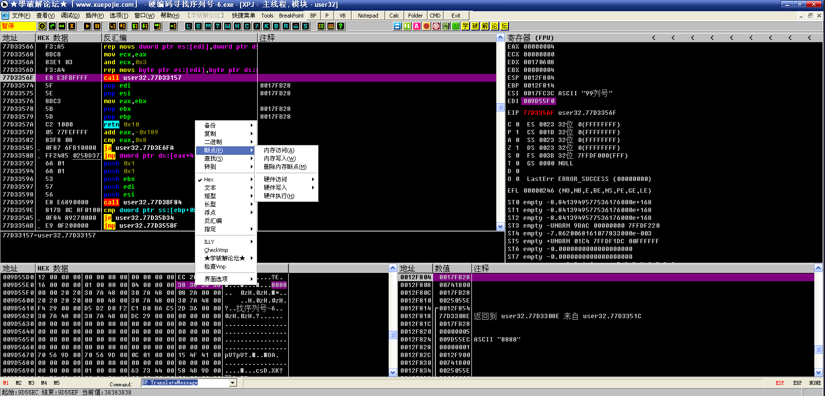 - 当其他api函数找不到的时候,或者说api函数下断点无效的时候,可以使用TranslateMesage 进行下断.