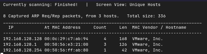 主机发现,这里只关注192.168.128.0/24的ip段.