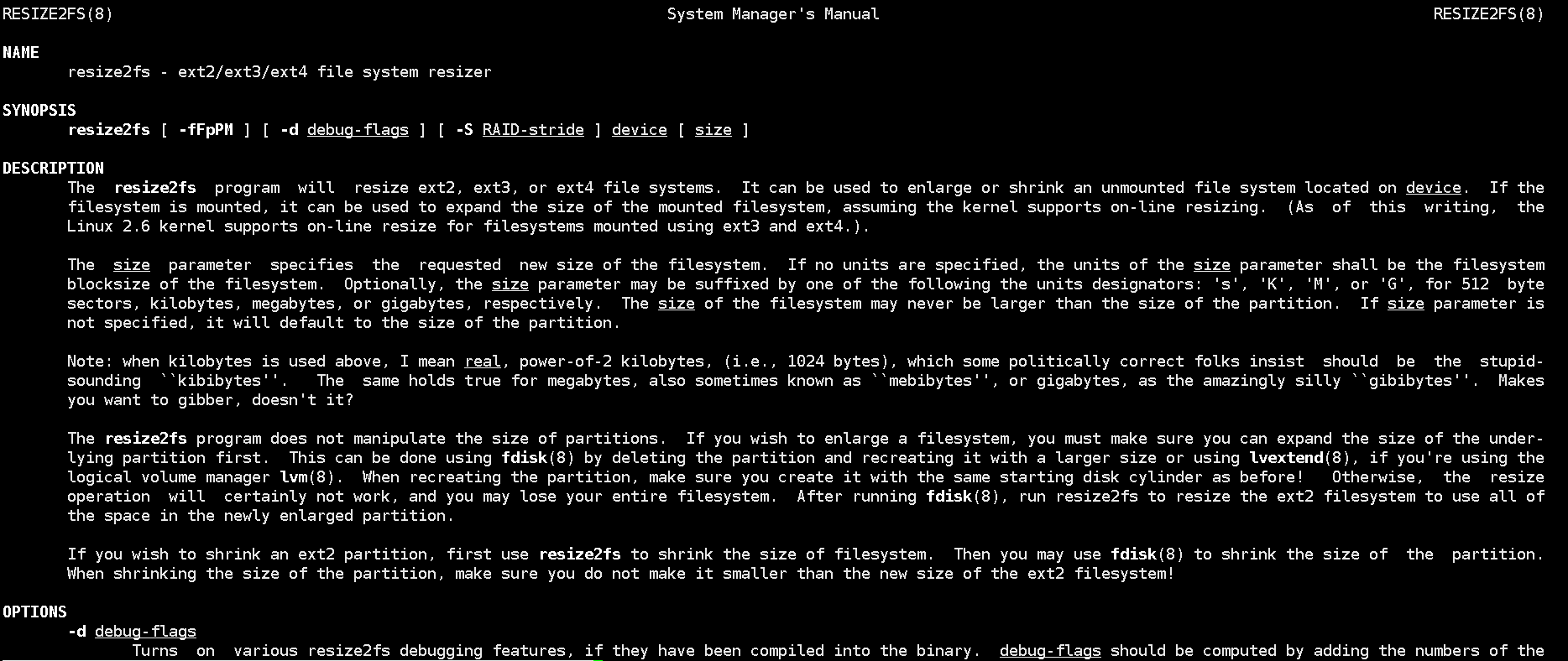 1、针对 EXT2/3/4 文件系统的在线扩容—— resize2fs、