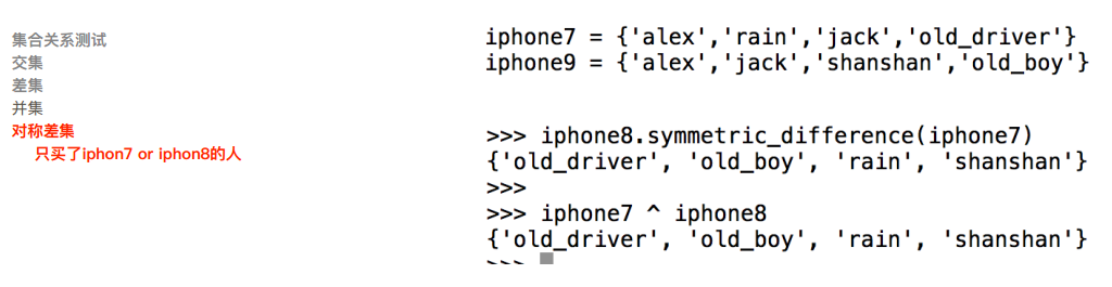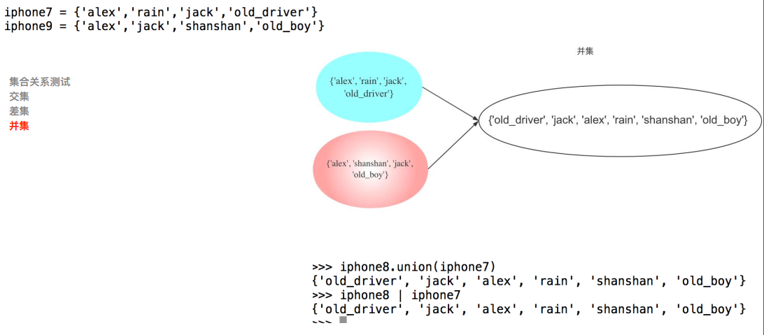set.issuperset(s) :判断集合是不是包含其他集合,等同于a>=b