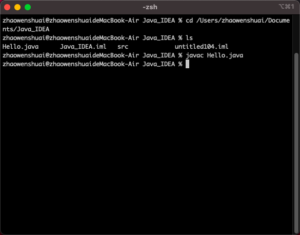 编译。打开终端,定位到Hello.java所在目录,输入: javac hello.java