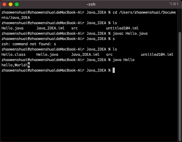 运行class。编译完成后能够看到生成了一个“Hello.class”文件,输入: java Hello