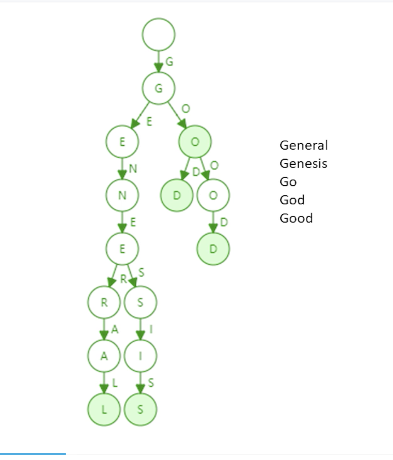 下图为一个通过5个单词组成的trie数据结构(只画出key,未画出value)