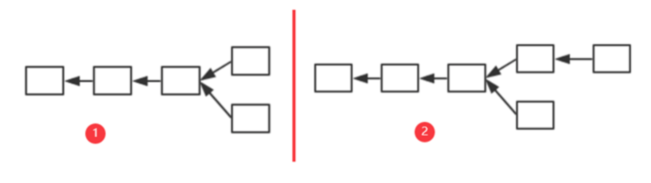 为了便于回滚。如下1中产生分叉,而后上面节点胜出,变为2中状态。那么,下面节点中状态的修改便需要进行回滚。因此,需要维护这些历史记录。
