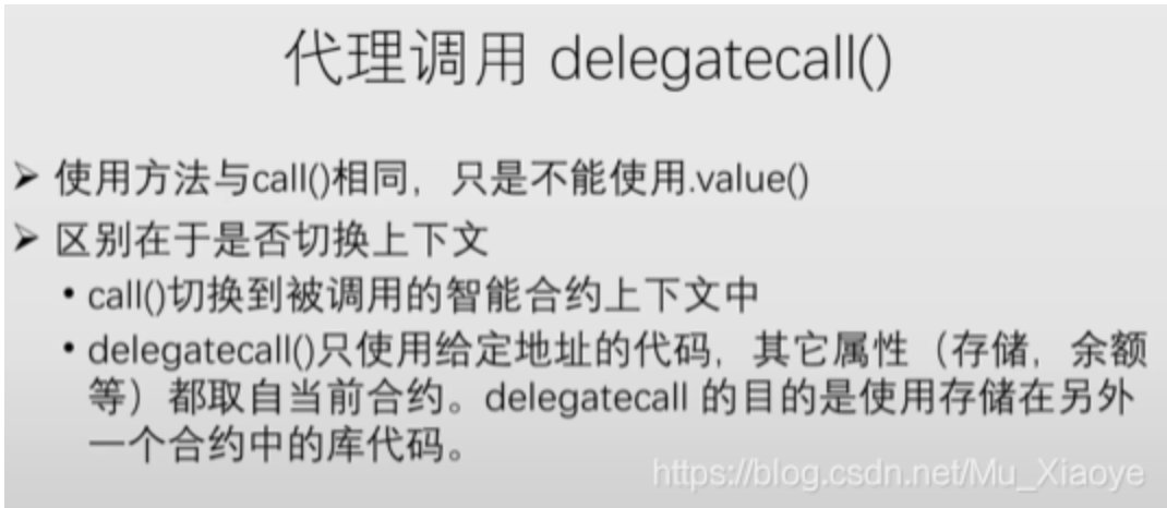 第一个参数是函数的signature,后面跟的是调用参数。这种方法和上面的方法的区别:一是对错误处理的不同,上面的方法调用的时候,如果调用的合约在执行过程中出现错误,会导致发起这个调用的合约跟着一起回滚,上面的例子当中如果合约A出现异常,B也会跟着出现异常;addr.call()这种方法,如果在调用过程中被调用的合约产生异常,call函数会返回False,表明这个调用时失败的,但是发起调用的这个函数并不会抛出异常,而是可以继续执行。