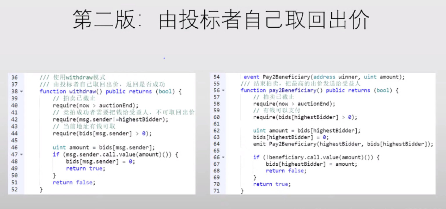 withdraw是说不用循环了,每个竞拍失败的人自己调用withdraw函数把钱取出来。