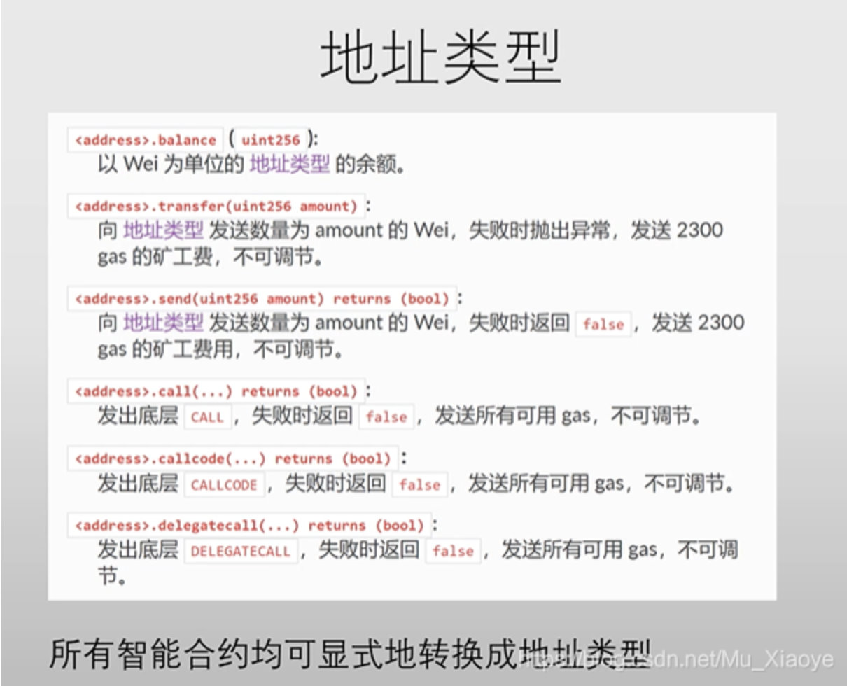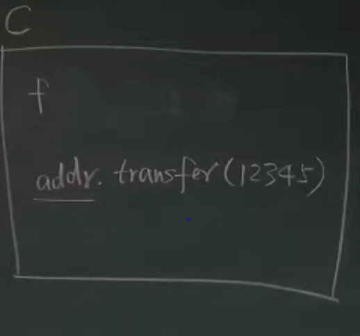 剩下的都是成员函数,成员函数的语义和直观理解不太相同,addr.transfer(12345)是当前这个合约C向这个地址转入多少钱。addr.call是指当前这个合约发起一个调用,调用的是addr这个合约。