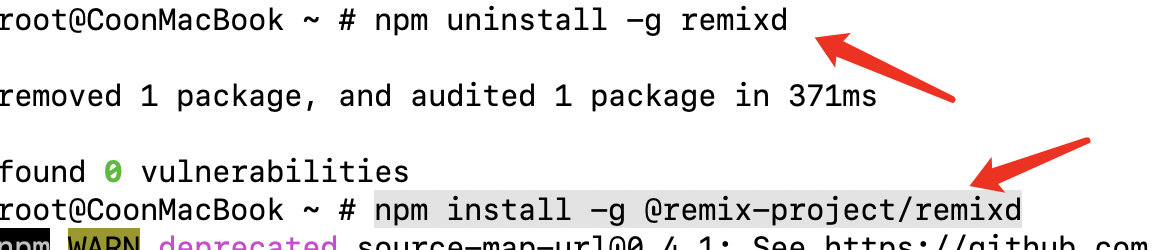 npm uninstall -g remixd // 卸载已有remixd环境,需在remixd路径下