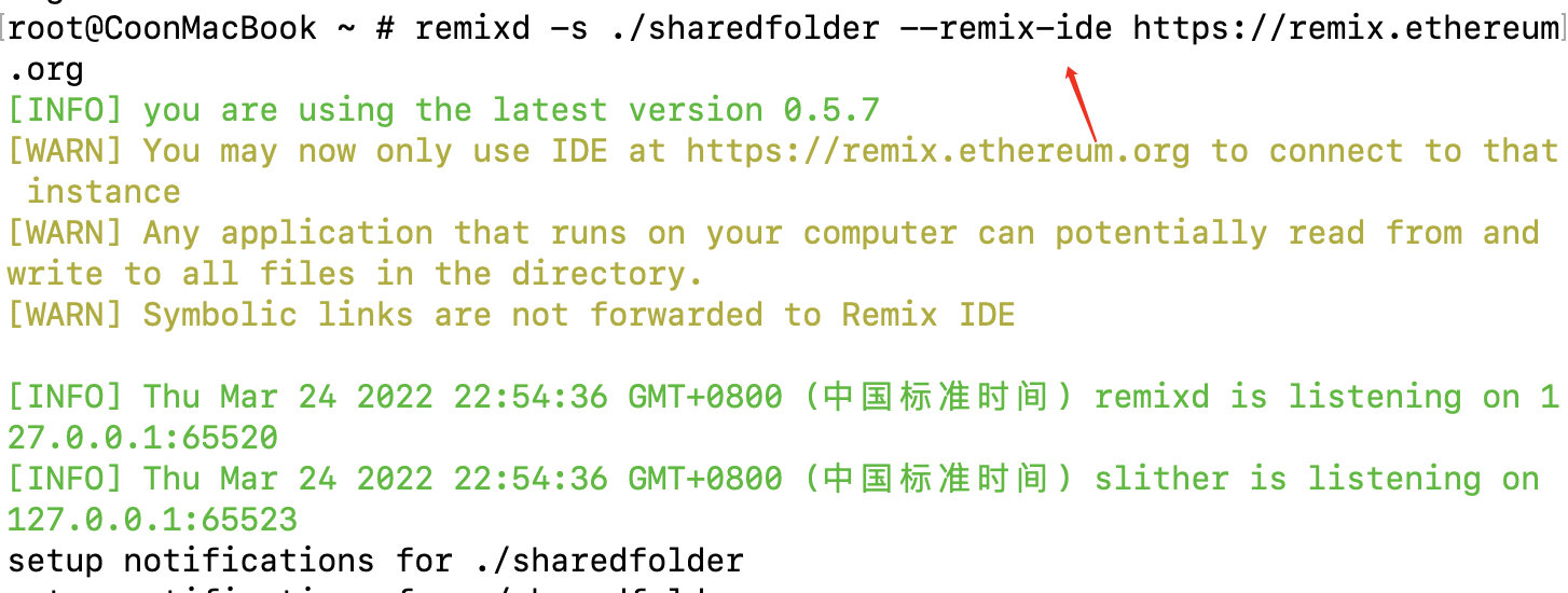 remixd -s ./sharedfolder --remix-ide https://remix.ethereum.org //链接到在线编译器