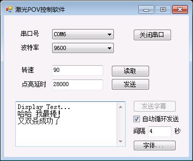 还有个有意思的创新,这回我用上位机串口通信,直接传送点阵数据过来显示,这样就相当于用电脑上面的字库,解决了汉字字库的问题,只要上位机文本框里能显示,单片机就能把它投影出来。不过现在16个点还是有点捉鸡,大的东西显示不了……