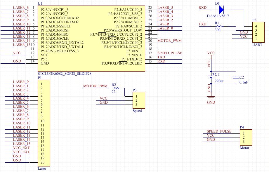 单片机IO不是直接驱动激光管,应连接PNP三极管。这里省略……