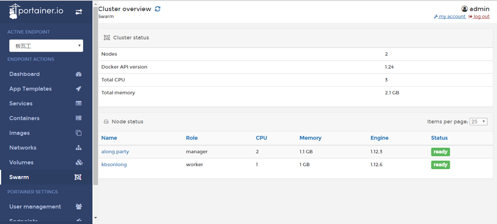 [root@along ~]# docker node list ID HOSTNAME STATUS AVAILABILITY MANAGER STATUS 4cejtuairtof6d0wjq88merwb * along.party Ready Active Leader 9388mi6e3fnk9l70g24cljhr5 kbsonlong Ready Active