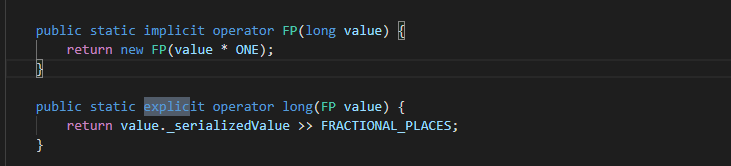 Implicit 表明使用隐式的类型转化符,转化类型无需任何表示,编译器也将默认转化成功