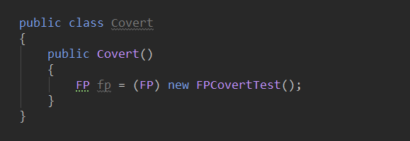 当不存在继承关系时,系统将会提示无法将类型进行转化,当需要进行转化时,则可利用转换操作符进行转化