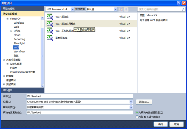 (8)对于创建wcf项目也很容易,可以利用vs工具创建wcf项目,如下图,也可以随便建立任何非wcf的web项目或应用程序的项目,但你只需要引用System.ServiceModel等类库就可以。
