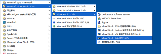(7)调用wcf的服务可以通过代理类调用,由于都是soap传输协议,所以客户端可以借助vs的ide工具通过web服务引用的方式引用,也可以手动下载代理类和配置文件的用svcutil命令,如在开始菜单里找到vs的工具菜单,点命令提示进入类似dos的窗口输入svcutil命令,可以下载到代理类和配置文件,如下: