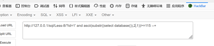 当前页面不回显,表明页面为假,即ascii函数里的database()的第一个字符<130