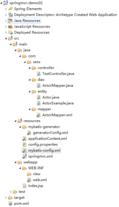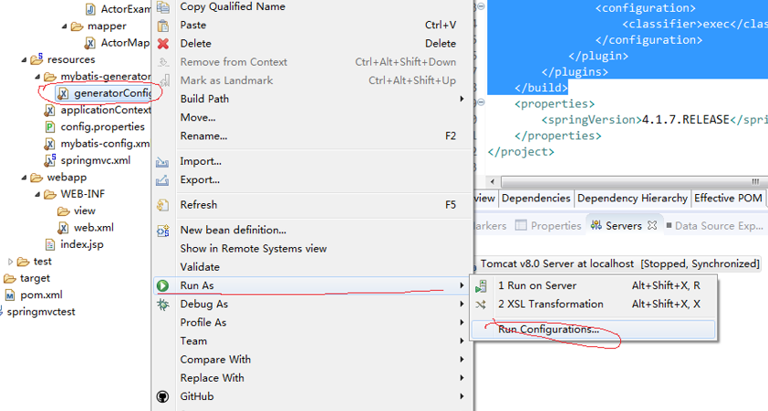②eclipse插件形式中,generatorConfig.xml中为targetProject="springmvc-demo01"
