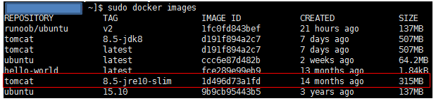 sudo docker pull tomcat:8.5-jre10-slim