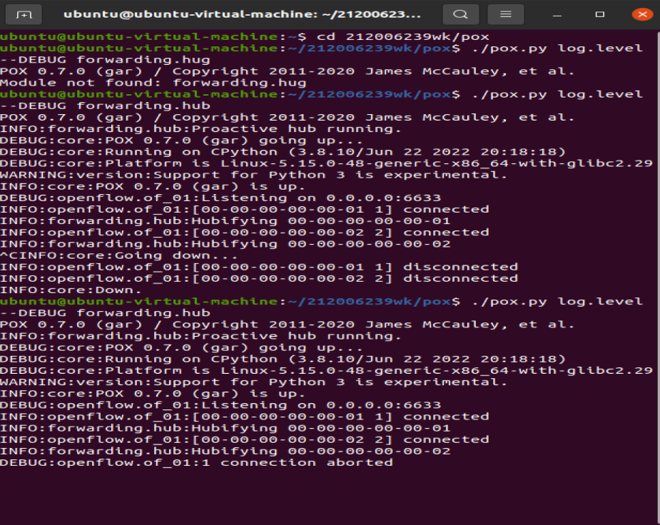 命令:./pox.py log.level --DEBUG forwarding.hub