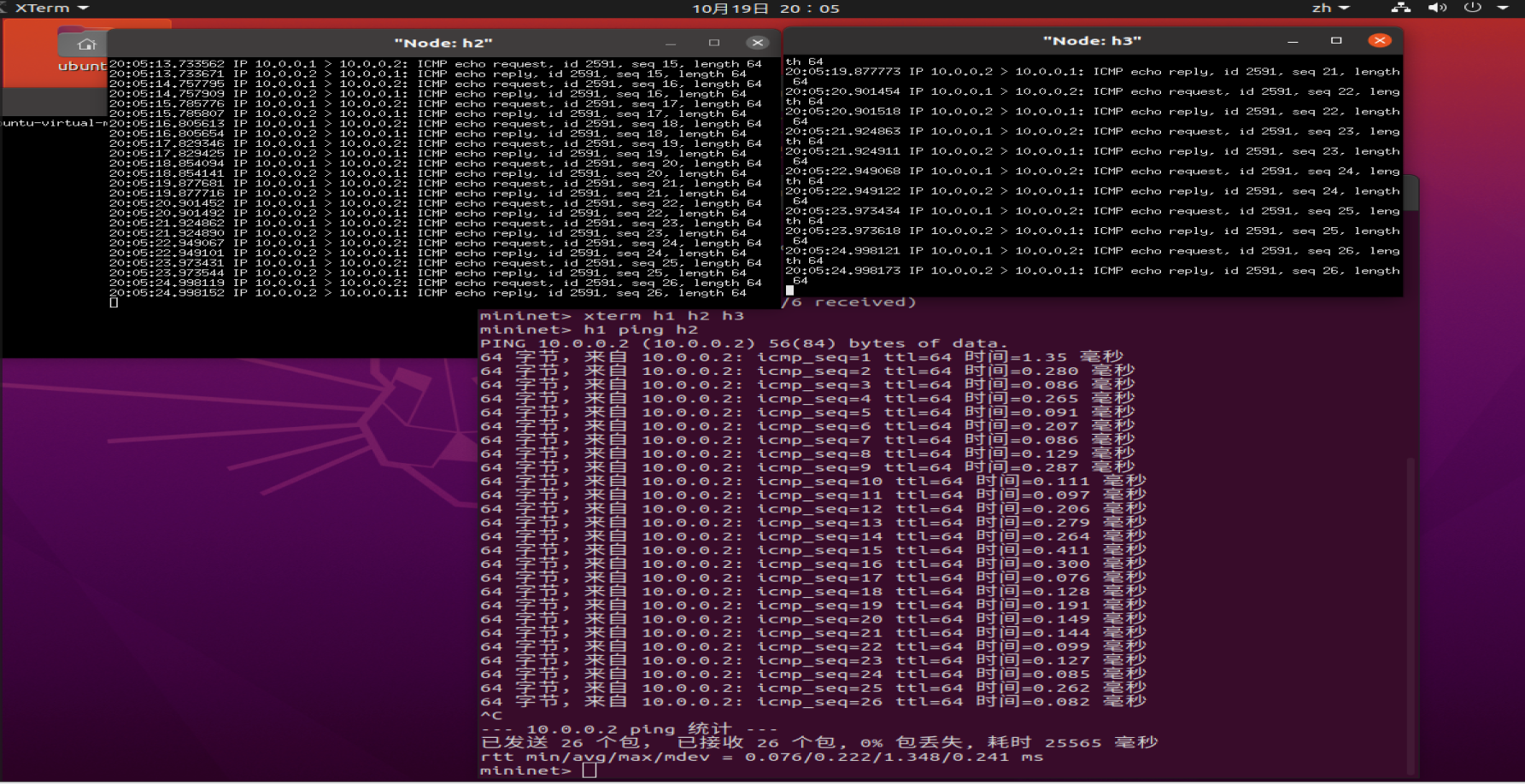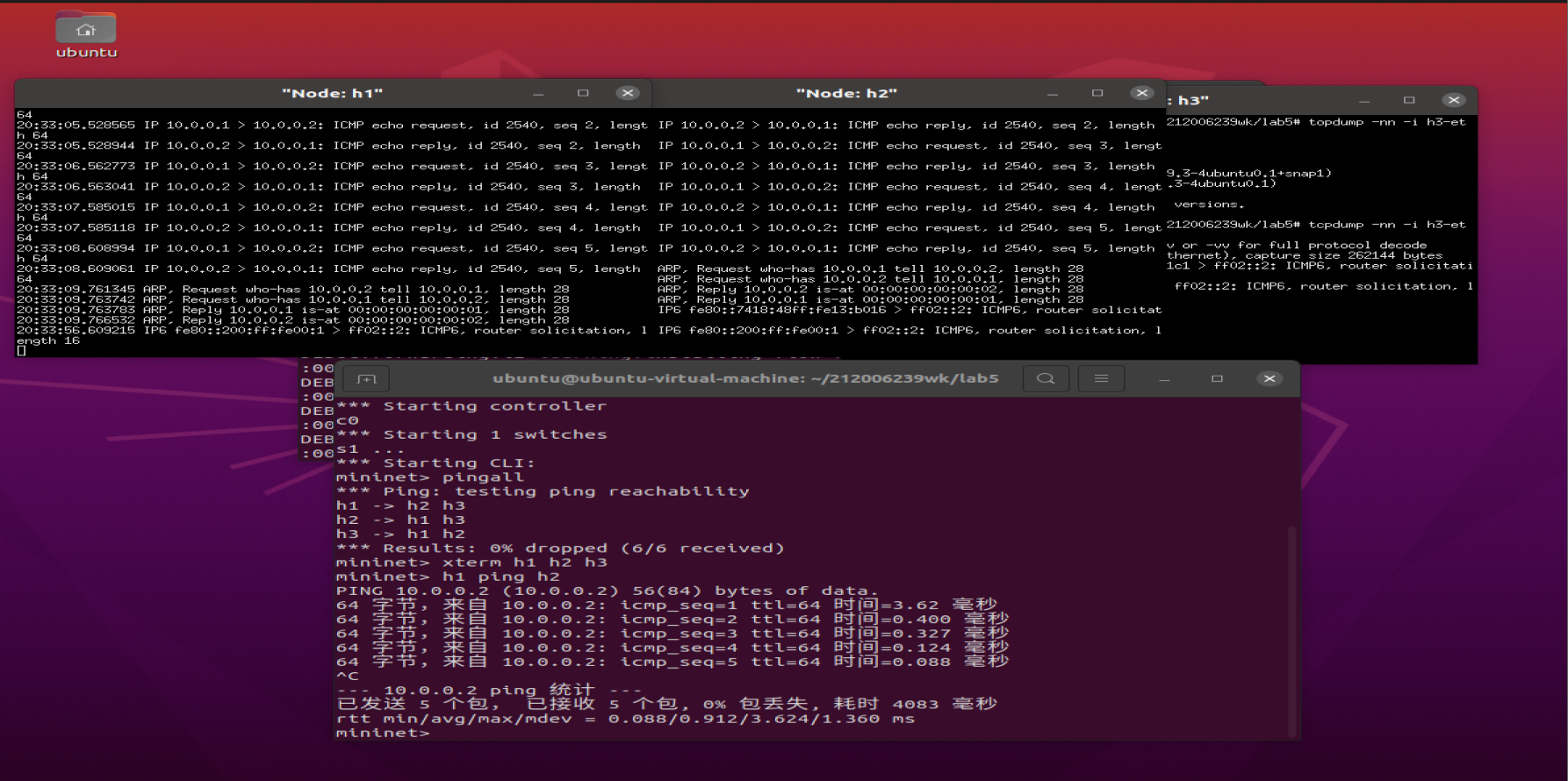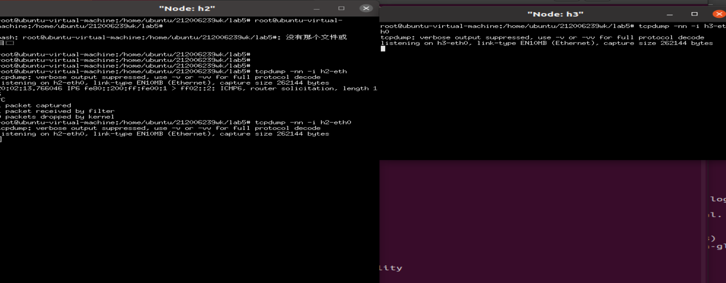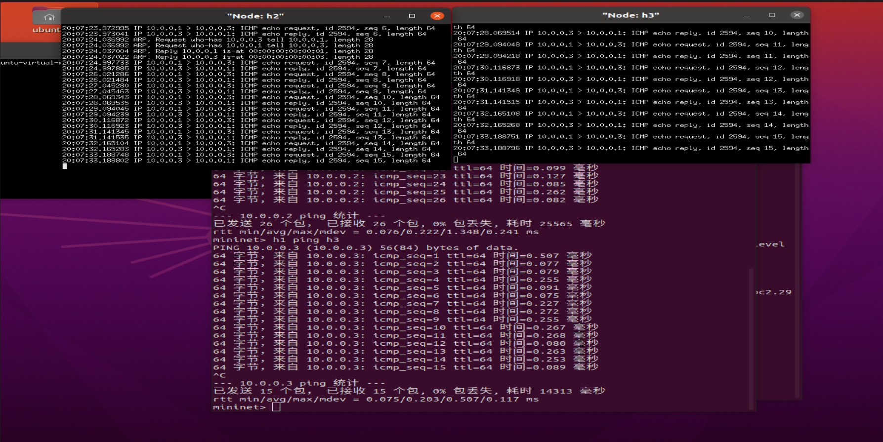 h1 ping h2(h2 h3 实现抓包成功)