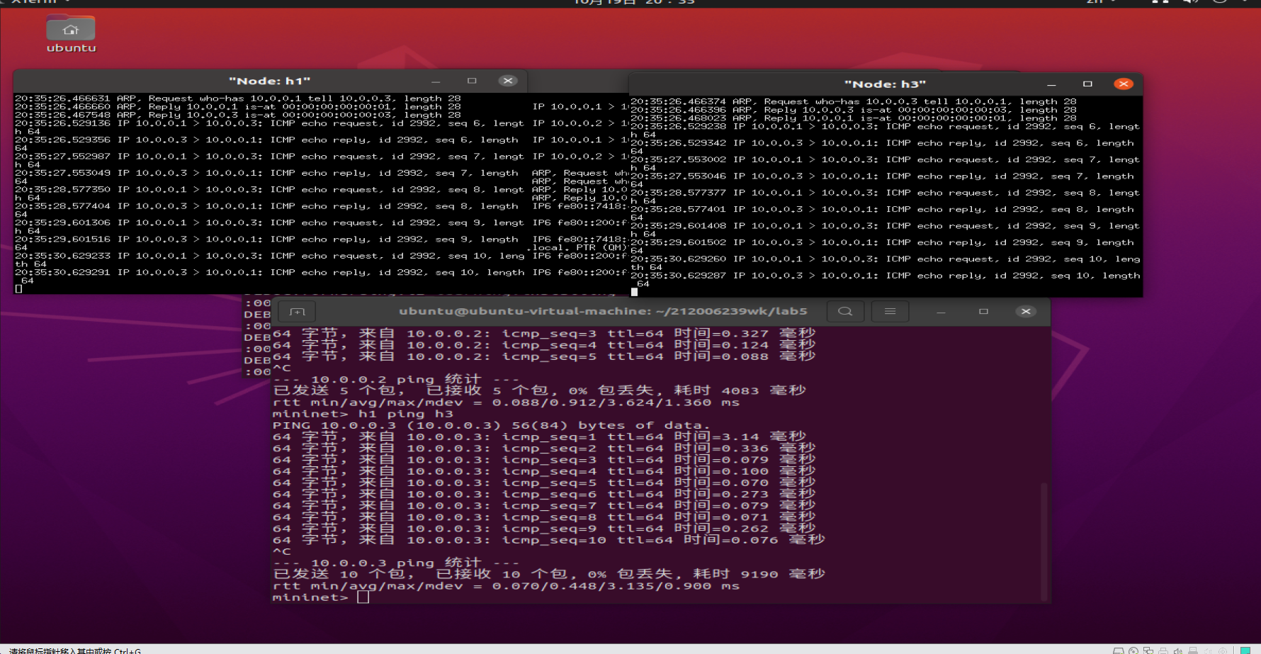 h1 ping h3(h1 h3 成功抓包)