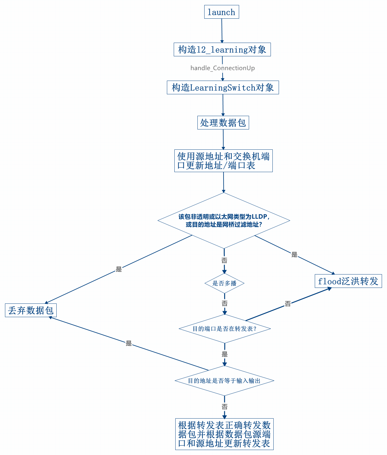 3、阅读L2_learning模块代码,画出程序流程图,使用 tcpdump 验证Switch模块。