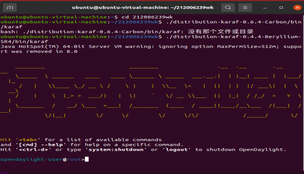 命令:./distribution-karaf-0.4.4-Beryllium-SR4/bin/karaf