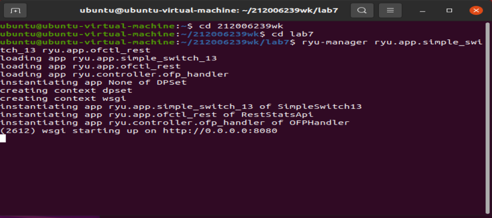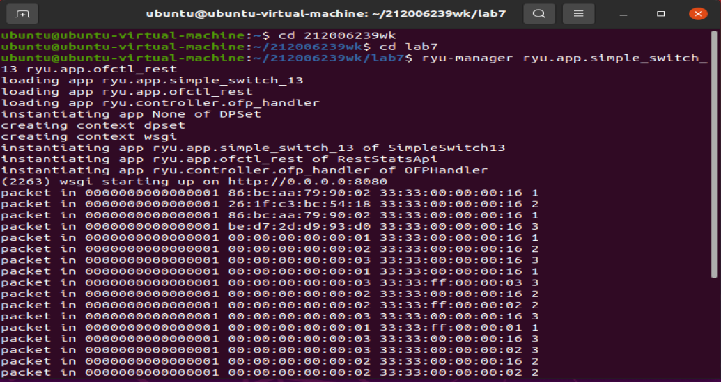 命令:ryu-manager ryu.app.simple_switch_13 ryu.app.ofctl_rest