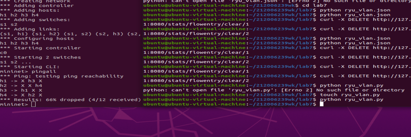 (2) 参考Ryu REST API的文档,基于VLAN实验的网络拓扑,编程实现相同的VLAN配置。