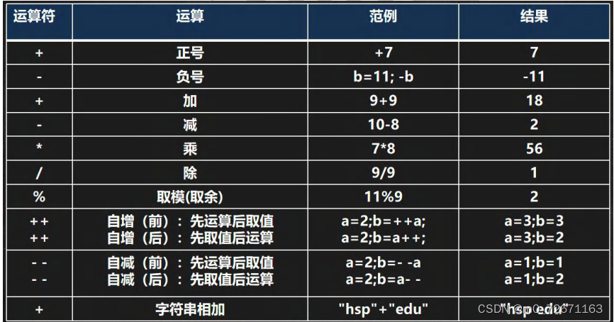 分为算术、赋值、关系(比较)、逻辑、位、三元运算符,运算符是一种特殊符号,用以表示数据的运算、赋值和比较等。
