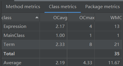 使用IDEA的MetricsReloaded工具对程序结构进行分析。工具中可能使用到的参数说明如下: