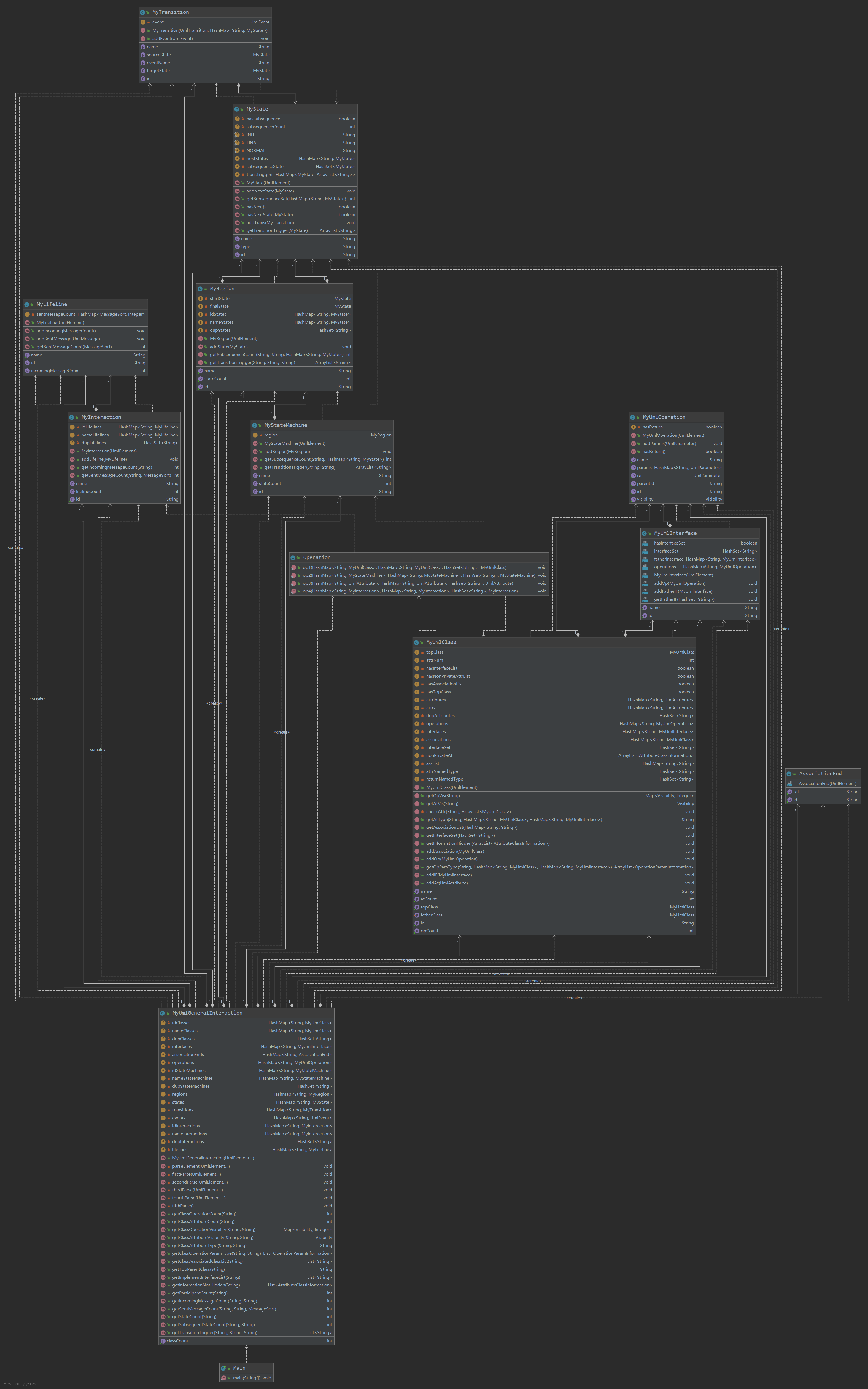 由于在 UML 源文件中,类图元素都是以一条条元素存在,它们之间的关系基本上是某个 UML 元素存储着父元素的 id 而没有形成可用于查询下一级元素的容器结构,因此必须自行设计各种类图元素,如 Class、Interface、Operation 等以设置合适的数据结构存储下一级元素(如 Class 需要存储类中的操作和属性,Operation 中需要存储操作中的各个参数)。与此同时,还需要实现对 UML 类图元素的解析,以实现将 UML 类图元素转换为自身设置的类图元素的过程。