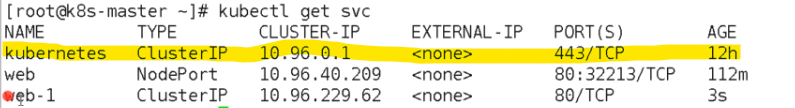 比如在下面这个svc列表中,web是作为NodePort类型的,可以看到它在 PORT(S)这一项是有两个端口号