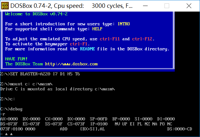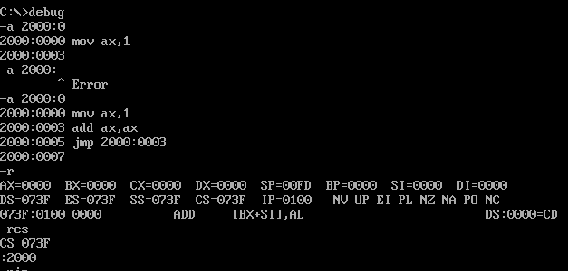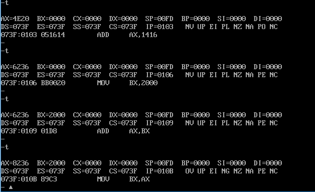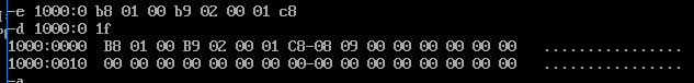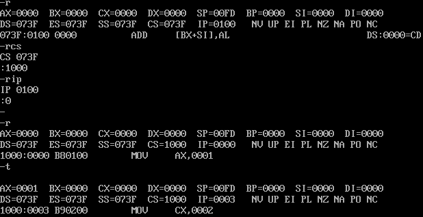(1)使用debug将下面的程序段写入内存,逐条执行,观察每条指令执行后CPU中相关寄存器中内容的变化。