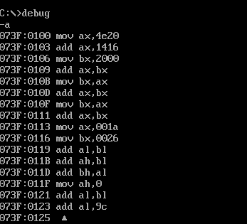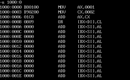 用u命令将内存单元中的内容翻译为汇编指令显示