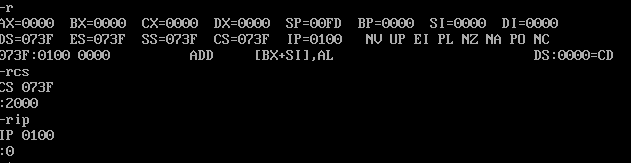 (2)将下面三条指令写入从2000:0开始的内存单元,利用这三条质量计算2的8次方