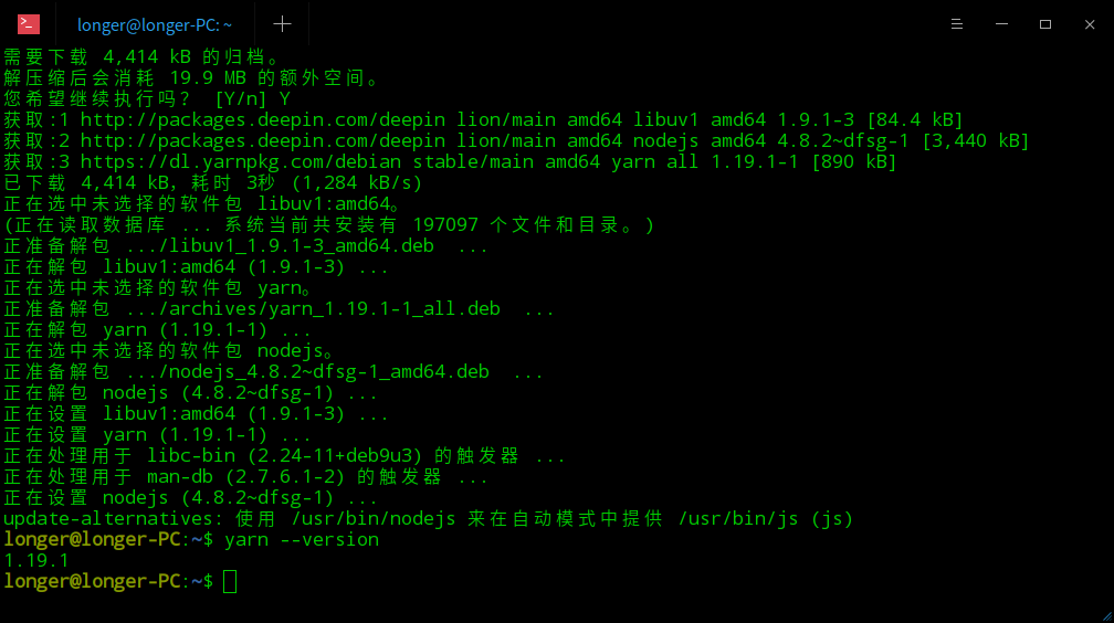 貌似使用Deepin的安装源安装的node版本低了一点。但是可以用。也可以慢慢等deepin官方更新安装源。也可以直接下载node最新版安装 https://nodejs.org/en/