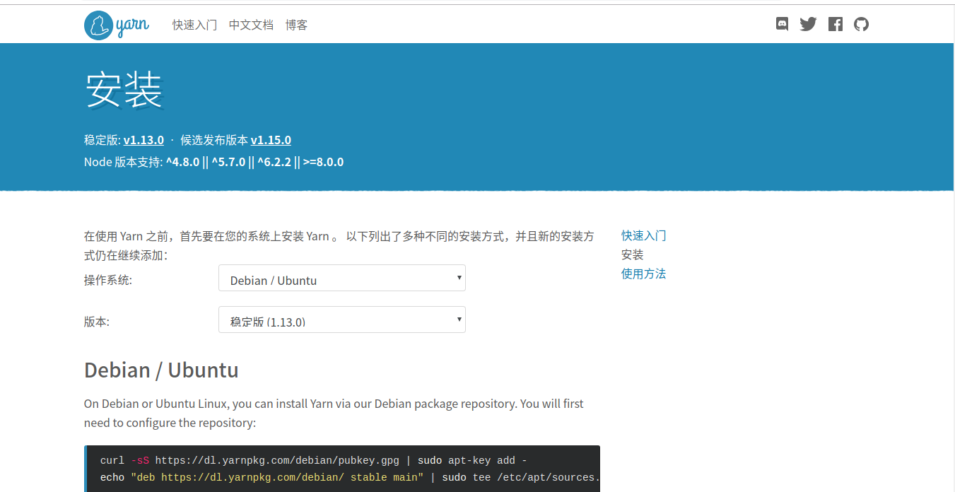 可能用的同学习惯使用yarn,而不是npm。node是没有自带yarn,需要安装yarn包管理器。 https://yarn.bootcss.com/docs/install/#debian-stable