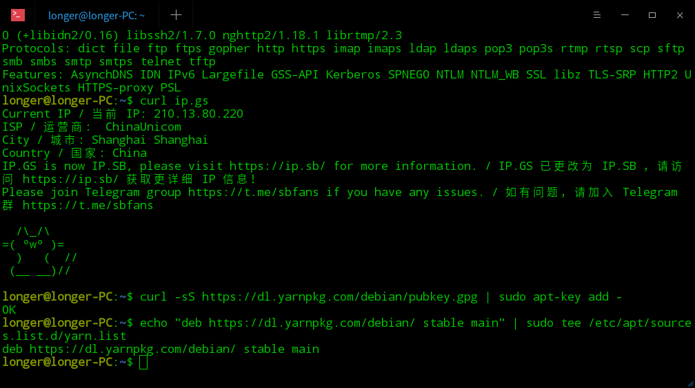 curl -sS https://dl.yarnpkg.com/debian/pubkey.gpg | sudo apt-key add -