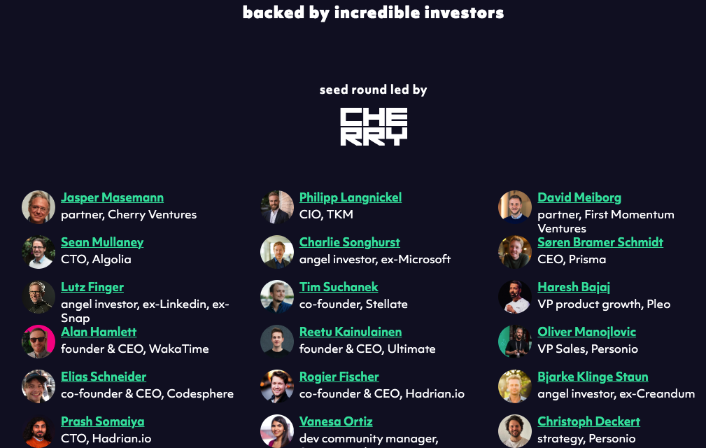 - 创始团队:从Uber出来的创业团队。曾在多家初创公司和高增长环境中领导并交付了大型软件和设计项目,例如 Uber、Google、Amazon 和 Sentry。