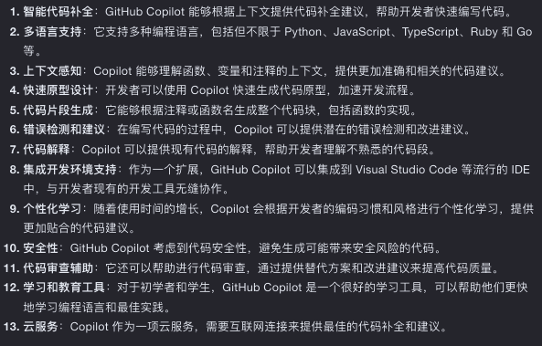- 创始团队:GitHub 和 OpenAI 合作开发的一款人工智能编程助手,用户体量巨大,背靠两棵大树