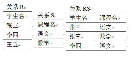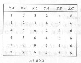 - 每个元组的前 r个分量(属性值)来自 R 的一个元组,后 s 个分量来自 S的一个元组,记为R×S