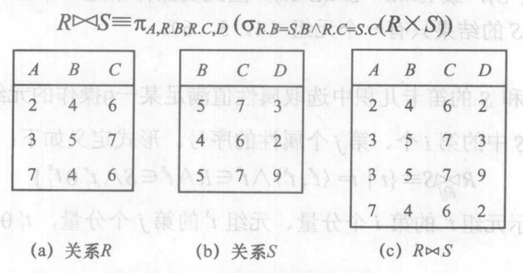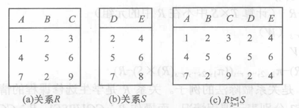 - 取两个关系的笛卡儿积,并且投影公共属性相同两个关系的所有属性