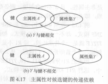 设关系模式\(R\)的属性集是\(U\),\(X\)是\(U\)的一个子集。如果\(X→U\)在\(R\)上成立,那么称\(X\)是\(R\)的一个超键。如果\(X→U\)在\(R\)上成立,但对于\(X\)的任一真子集\(X\)都有\(X→U\)不成立,那么称\(X\)是\(R\)上的一个候选键。